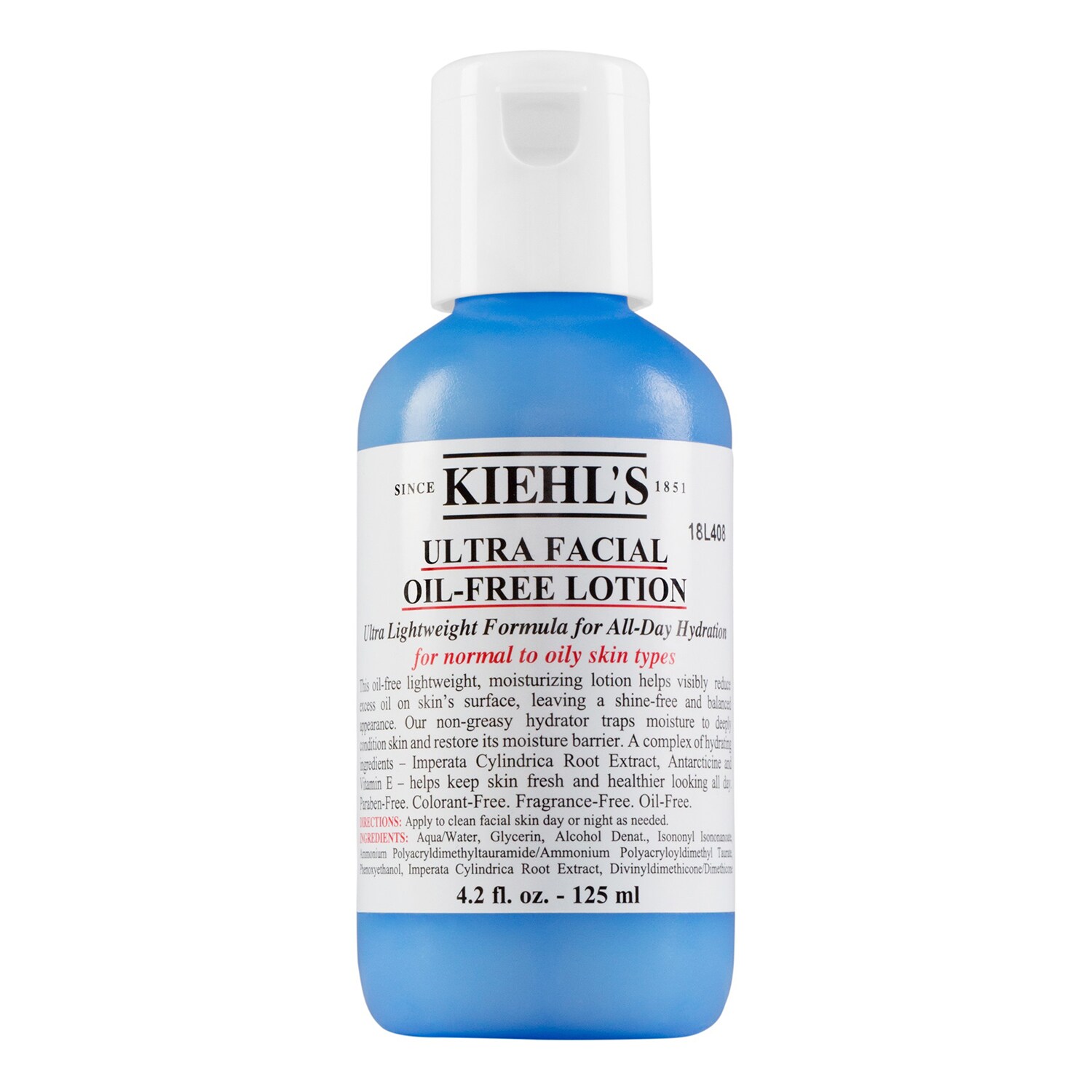 Mehr lesenFettfrei und feuchtigkeitsspendend lässt die Ultra Facial Oil-Free Lotion Gesichtslotion den Teint voller Balance wieder gesund strahlen. Innere Ungleichgewichte und äußere Einflüsse berauben ölige oder normale Haut oft ihres gesunden Aussehens. Die Ultra Facial Oil-Free Lotion Gesichtslotion von Kiehl’s erhält den Feuchtigkeitshaushalt der Haut und schafft mehr Ausgeglichenheit. Im Inneren sorgen Silberhaargraswurzel-Extrakt und Antarcticine für einen spürbar beruhigten und tiefengenährten Teint. Frei von Ölen, Parabenen, Duft- und Farbstoffen, dafür mit einer Extra-Portion Vitamin E, schafft die Lotion ein frischeres und gesünderes Hautbild, das frei von Fetten und Unreinheiten strahlt.Produktcode: 649677